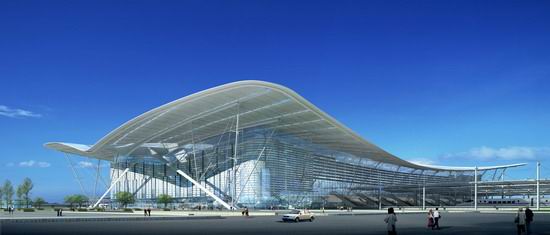 青島北站位于山東省青島市李滄區(qū),占地面積40000㎡,毗鄰黃海(膠州灣)。中鐵二院以、北京市建筑設(shè)計(jì)研究院、法國AREP共同設(shè)計(jì)青島北站站房。整體造型富有動感,伸展飄逸,挺拔而有張力,恰似一只海鷗振翅高飛,象征青島經(jīng)濟(jì)文化蓬勃發(fā)展。青島北站設(shè)計(jì)靈感源于青島海濱印象,給人無限遐想;同時采用新穎獨(dú)特的交叉拱作為建筑主要結(jié)構(gòu)體系,支撐起曲線優(yōu)美的屋頂,形成了一種青島門戶的形象,象征青島以博大的胸懷迎接八方來賓。